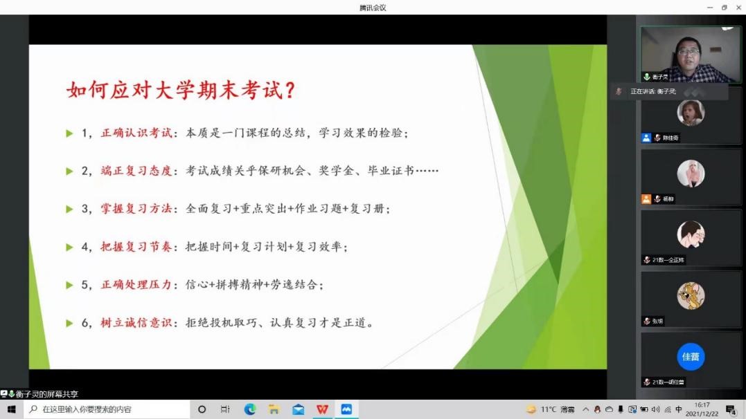 疫情期间,为帮助广大同学缓解疫情期间的学习生活压力,始终筑牢心理防线,营造良好育人氛围。12月20日至22日,AC米兰中文举办了“疫情期间大学生压力管理与情绪调节”系列线上讲座三场,本次系列讲座由中国心理学会理论心理学专委会委员、教育部陕西师范大学课程中心心理健康教育研究中心副主任段海军教授主讲,AC米兰中文全体本科生、研究生参加了三场系列讲座。同时,积极组织学生参加学校举办的“疫情下大学生宿舍人际关系建设”、“正念练习”等心理类讲座,向学生转发公益心理援助平台信息等,联系学校心理中心老师与存在心理困惑的学生一对一交流等。