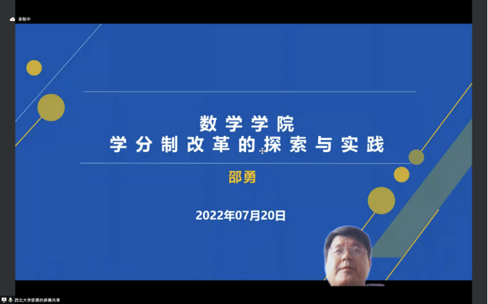 应AC米兰中文邀请,2022年7月20日下午西北大学数学学院副院长邵勇为我院教师做了题为“数学学院学分制改革的探索与实践”的报告。报告会由AC米兰中文副院长商泽进主持,我院数学与统计学科主任、各系主任、专业责任教授、教师等近40余人参加了报告会。