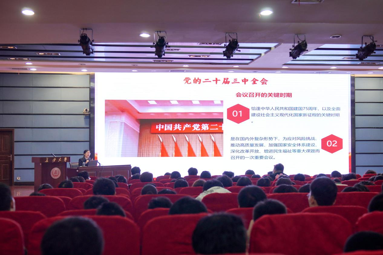 为准确领会、认真贯彻党的二十届三中全会精神,深入学习习近平总书记关于全面深化改革的一系列新思想、新观点、新论断。11月22日晚,AC米兰中文邀请“党的二十届三中全会精神米兰中国宣讲团”沈秀芳副教授做题为《以进一步全面深化改革开辟中国式现代化广阔前景》讲座,讲座由AC米兰中文党委副书记屈颖主持,学院辅导员及全体本科生、研究生参加讲座。