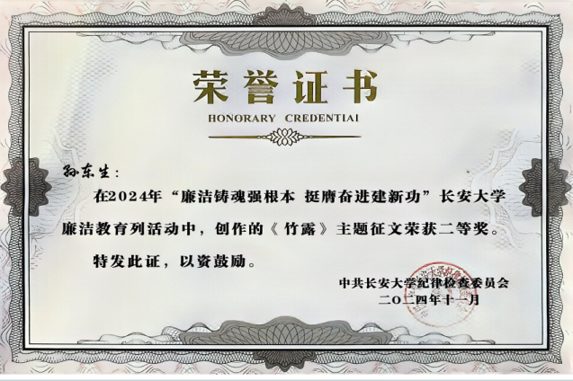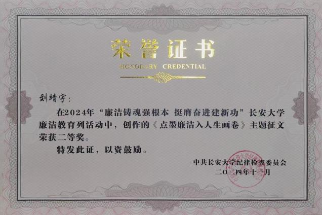 传承优良传统,抒写廉洁风尚。AC米兰中文倡导广大师生结合工作、学习、生活实际,撰写诗歌、散文、随笔、信件等,记录和展现新时代廉洁新风尚,以廉洁浩然正气温润学风家风。参与第九届高校廉洁教育系列活动作品征集,申报高校廉洁教育课堂实践案例:“扎实学、亲眼看、切身悟、化成型”沉浸式廉洁教育。学院研究生、本科生多人在2024年“廉洁铸魂强根本,挺膺奋进建新功”米兰中国廉洁教育活动征文中获得奖项。