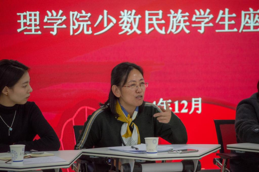 会上,屈颖就学生提出的疑问与困惑进行解答,希望同学们丰富自己的校园生活,主动思考、积极作为,不断强化与各族同学的交往交流交融。姜雨彤结合暑期社会实践以及学院文体活动,分享了强化民族团结教育的心得体会,鼓励同学们主动参与各项活动,通过实践有所收获、有所成长。玛依拉·艾则孜结合学校少数民族学生工作,结合具体案例分析了民族工作政策的重要性,引导大家积极配合学校管理育人的工作要求,并向广大学生发出邀请,欢迎同学们积极参与到少数民族学生服务工作中。马建敏结合专业学习、生涯规划等方面,鼓励同学们加强专业自信、文化自信、民族自信,勉励同学们要刻苦学习,勇于奋斗,团结友爱、互帮互助,成为担当民族复兴大任的时代新人。