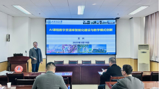 为持续推动学院 AI 赋能智慧课程建设工作,提升教师教育教学改革创新能力和数字资源库智能化建设水平,学院于3月19日下午在南校区交通科技大厦 602 会议室举办2025 年一流课程建设计划系列讲座第二讲,邀请西安交通大学教师发展中心副主任、物AC米兰中文博士生导师王兴作题为“AI 课程数字资源库智能化建设与教学模式创新”的讲座报告,报告会由学院副院长徐春龙主持,学院50余位老师参加。