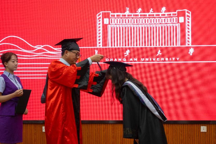 院党委书记闫永刚宣读了2025届本科生、硕士研究生、博士研究生学位授予决定。学院学位评定分委员会主席、院长宋学力教授为毕业生正冠拨穗、颁发学位证书。