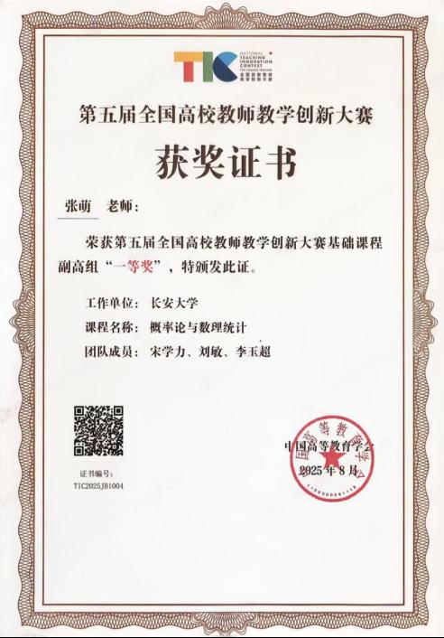 8月16日至19日,由教育部高等教育司指导、中国高等教育学会主办的第五届全国高校教师教学创新大赛现场评审在北京理工大学举行,我院教师张萌副教授在激烈的竞争中脱颖而出,荣获基础课程副高组最高奖一等奖,是我院教师在该项赛事中取得的最好成绩,为学校和学院争取了荣誉。