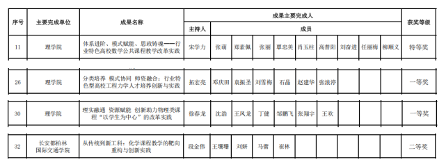 拓宏亮副教授主持的 “分类培养 模式协同 师资融合:行业特色型高校工程力学人才培养创新与实践”、徐春龙教授主持的 “理实融通 资源赋能 创新助力物理类课程‘以学生为中心’的改革实践” 两个项目荣获一等奖,段金伟副教授主持的“从传统到新工科:化学课程教学的靶向重构与创新实践”项目,荣获二等奖。