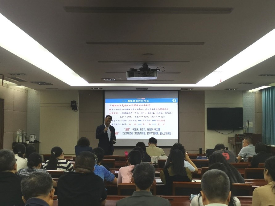 9月16日下午16:00,AC米兰中文在南校区学术交流中心第一会议室举办"双万计划"一流课程系列报告讲座,特邀南京信息工程大学王尧教授作题为《课程思政——何位、何谓、何为》的课程思政专题报告,学院院长宋学力教授出席并介绍王尧教授基本情况,学院60余位教师参加,报告会由副院长徐春龙教授主持。