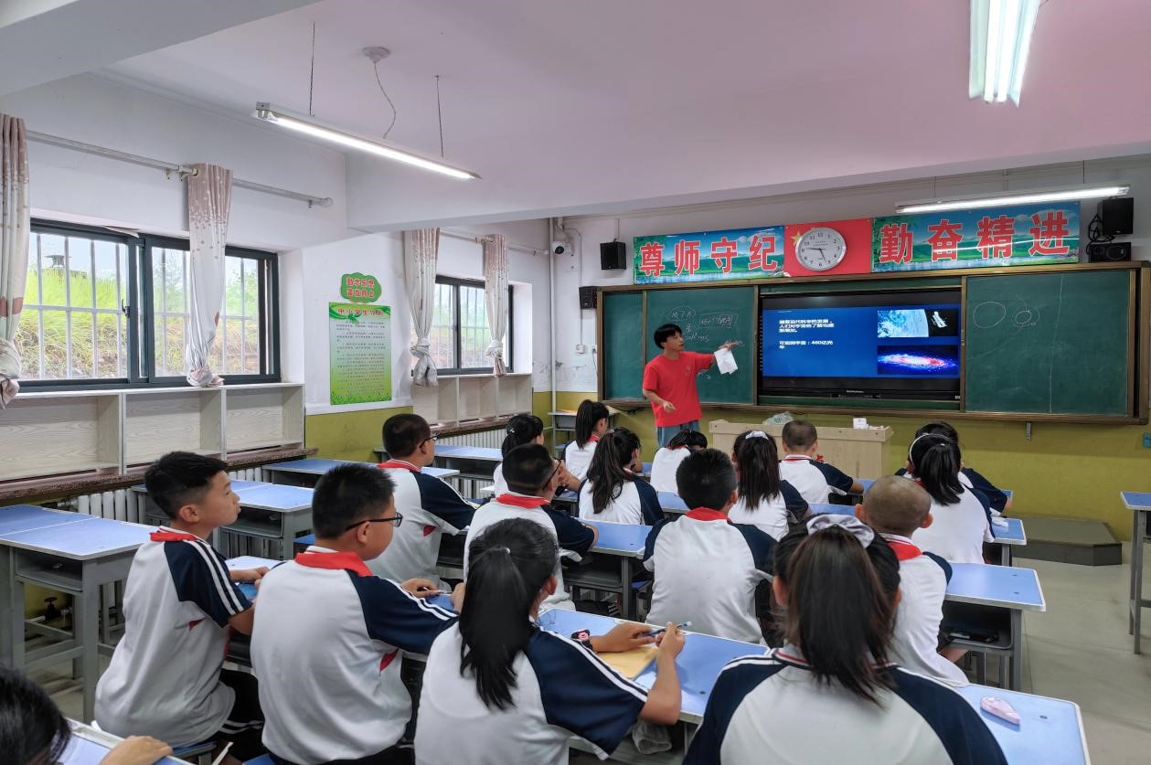 第二节课,实践队员结合自身特长爱好,讲解了宇宙起源和地球特殊性等相关知识。告诉学生们地球是目前人类已知唯一的宜居星球,呼吁大家保护我们赖以生存的地球,为子孙后代留下天蓝、地绿、水清的美丽家园。