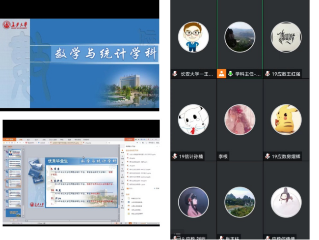 为使学生全面了解数学学科、认清考研与就业形式、鼓舞学生士气、增强专业自信,925日晚,数学学科以腾讯会议方式召开了“助你前行”就业与考研动员会。学科主任张太雷老师,数学与应用数学系系主任肖玉柱老师、统计系系主任任丽梅老师、信息与计算科学系系主任郑素佩老师、数学建模中心主任刘奋进老师、2019级数学两个专业全体学生及2020级部分同学参加了会议。会议由2019级数学类思政班主任王成主持。
