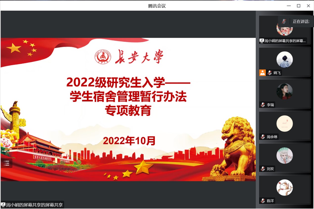 为了增强学生宿舍安全意识,促进新生适应宿舍学习生活和遵守学校社区相关管理制度,10月8日,AC米兰中文通过腾讯会议召开2022级研究生新生教育工程之学生社区管理暂行办法专项教育,会议由研究生辅导员周小娟主持,全体2022级研究生新生参会。