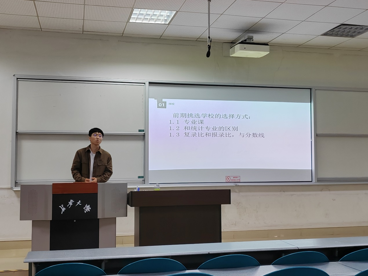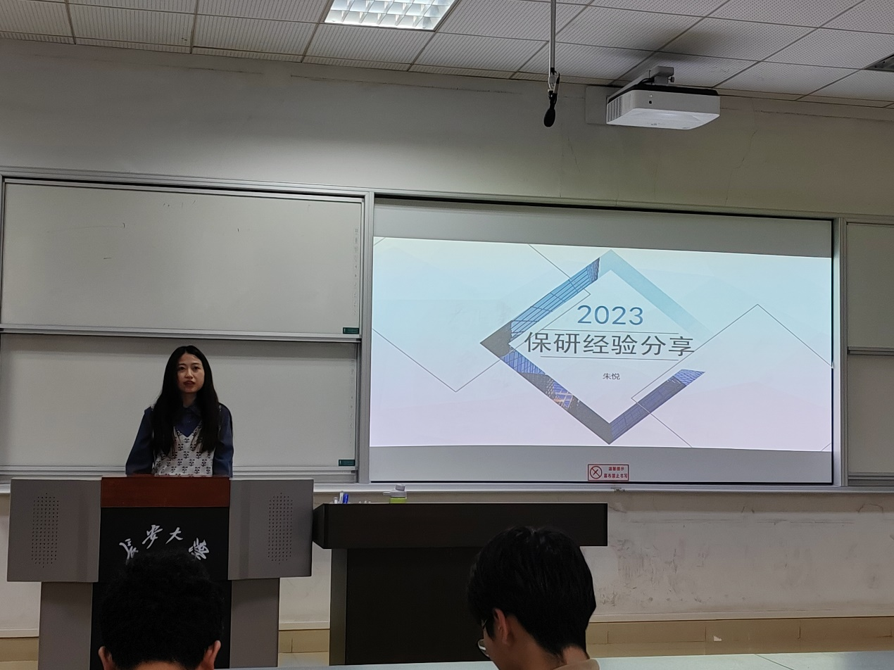 刘延海介绍了2024届毕业生就业指导专题教育的整体安排,讲解了举办本次经验分享会的意义。紧接着,四名同学结合自身经历,分别从保研、考研、求职等方面进行分享。朱悦介绍了保研的基本要求、学校选择、材料准备、夏令营申请等。薛嘉豪分享了自己的备考经历、复习计划、资料选择、考前练习等。胡森贵从考研与就业的选择、职业规划、寻找单位、网申流程、面试经验等方面进行了介绍。韦沆璐从求职与专业学习的关系,招聘信息选择,与HR的沟通等方面进行了分享。