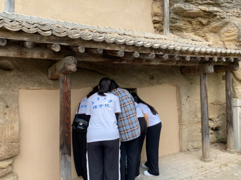 实践队伍首先进入中共中央军委总政治部旧址,这里每个房间的设施都很简陋,办公室不远处就是防空洞,实践队员们看着防空洞即想象出当年战火连天的场景,不论是领导人还是普通士兵,都冒着生命危险英勇奋斗,他们有坚定的信念和大无畏的牺牲精神,激励实践队员们坚定理想,勇敢拼搏。