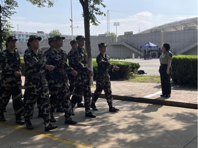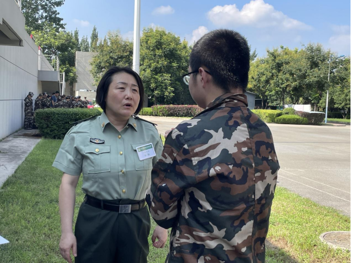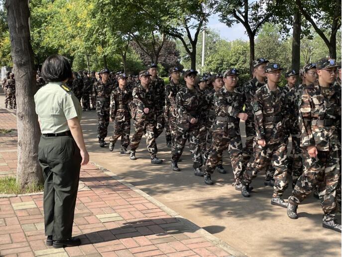烈日当头,政委屈颖与“小战士”们在校道上共同训练,深入感受新生的军训生活。在训练之余,她向同学们强调了军训的重要性:大学新生开学的军训是一项锤炼意志、强化身体、增强团队精神和培养爱国主义精神的重要活动,希望同学们珍惜军训机会,端正训练态度,圆满完成各项训练,取得优异的训练成果。