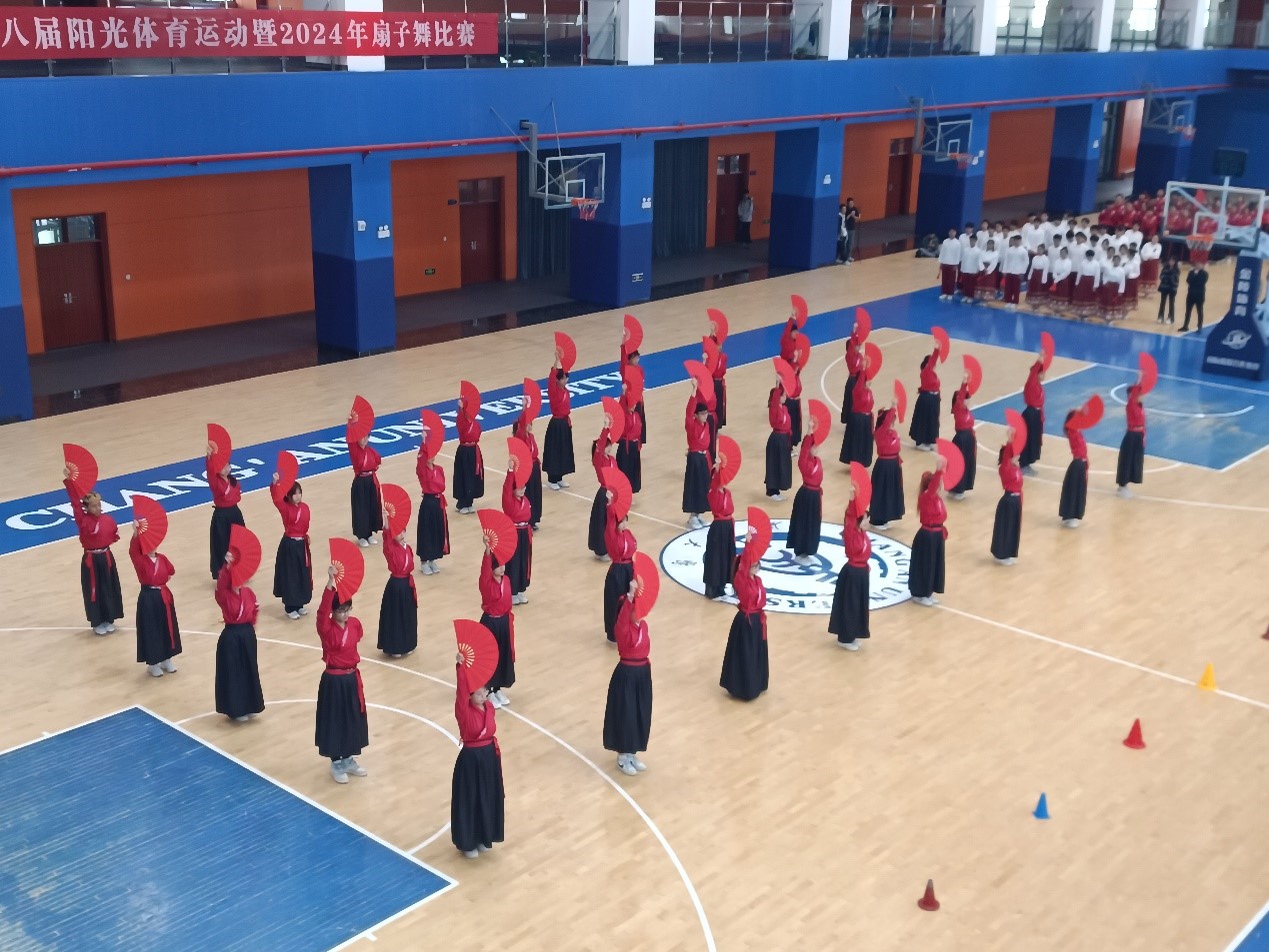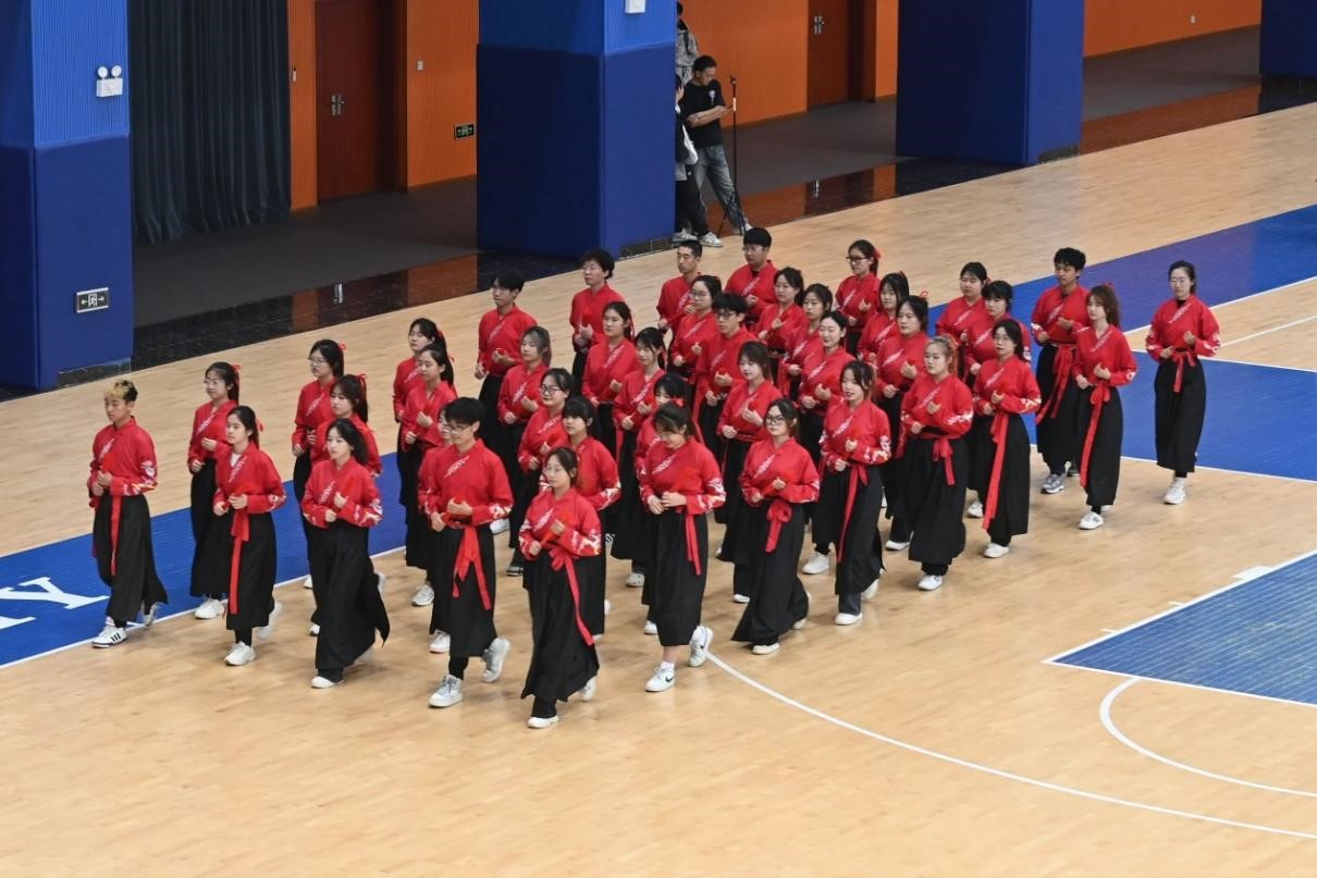 赛场上,队员们迈着自信的步伐入场,随着音乐旋律,他们手持折扇、轻盈起舞,动作整齐划一、青春洋溢,充分展示了训练成果,最终取得了第八名的优异成绩。