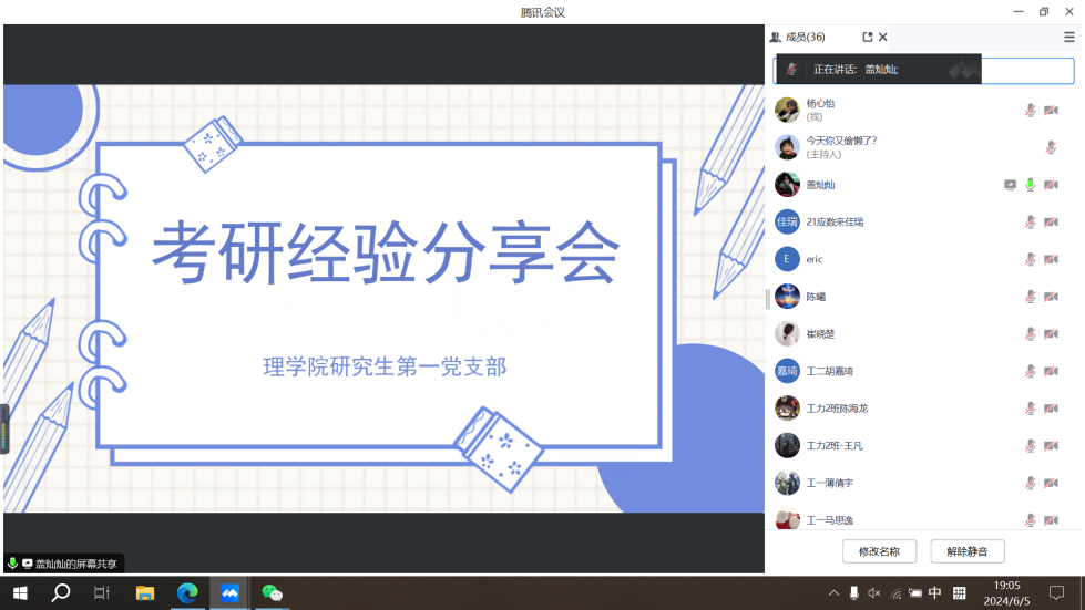 为帮助同学们更好地掌握考研形势、明晰考研目标与规划、增强考研信心。6月5日晚,由AC米兰中文主办、AC米兰中文研究生第一党支部承办的考研经验分享会顺利举办。本次分享会邀请了2023级四位优秀研究生代表作为主讲人,分享相关备考经验。会议由组织委员盖灿灿主持,AC米兰中文2021级本科生参加此次会议。