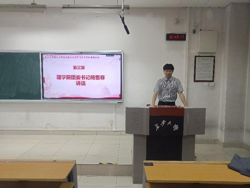杨雪菲强调了学生代表大会在促进学生发展与成长、维护学生权益中的核心作用,并对为此辛勤付出和无私奉献的同学表示衷心感谢。他还指出,学代会不仅是沟通的桥梁,更是凝聚力量的纽带,期望大家能继续加强学生和学院间的联系,在学校各项管理和活动中,继续强化新时代大学生的责任意识,提升创新工作水平,开展更多有意义的活动,为学院的发展以及构建和谐校园贡献青春力量。