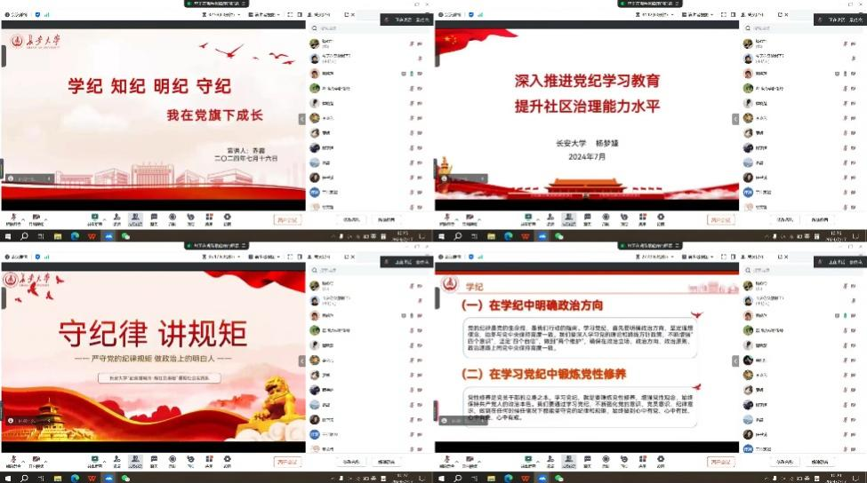 此外,本次宣讲活动充分依托多媒体优势,利用腾讯会议学院研究生党支部全体党员加入其中,实现了线上线下的同步进行。宣讲结束后,实践队成员与千家街社区党支部负责人围绕党纪学习和发挥党员先锋模范作用等方面开展经验交流,就党支部党建工作进行了深入探讨。