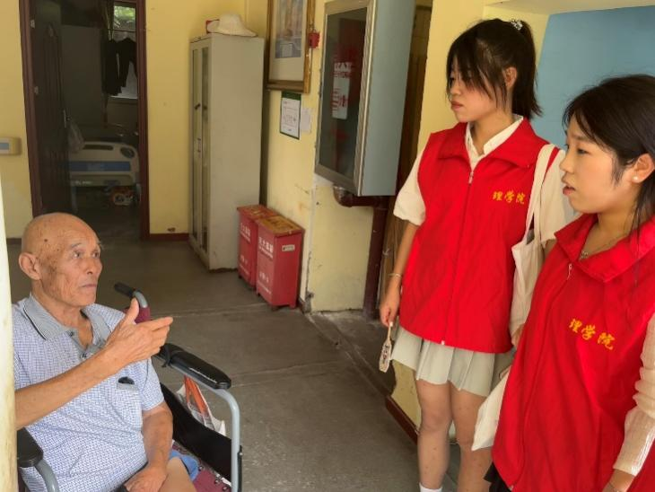 7月16日,阳光普照,实践队员早早起床,向武汉万福林社区护佑养老院出发。队员们不仅帮助老人打扫房间、整理内务,还与老人们亲切交谈。队员们围坐在老人身边,用温暖的笑容和亲切的话语,耐心地聆听老人们讲述那些珍贵的红色故事。队员们听得入神,时而点头赞同,时而为之感动,仿佛自己也穿越时空,亲身经历了那段波澜壮阔的历史。