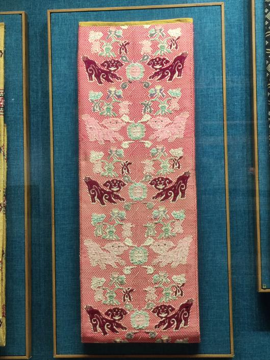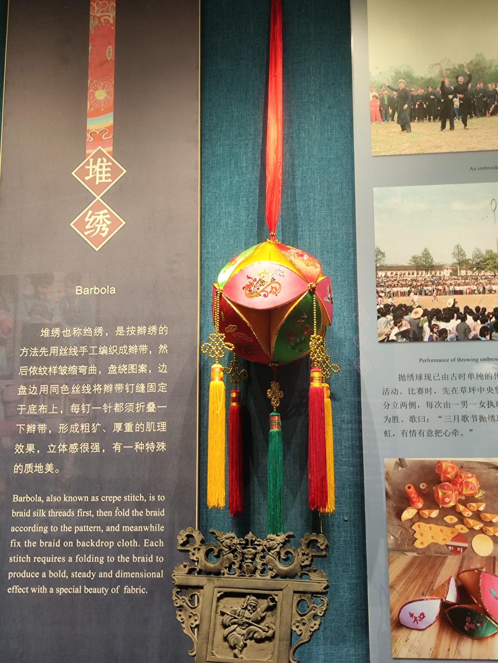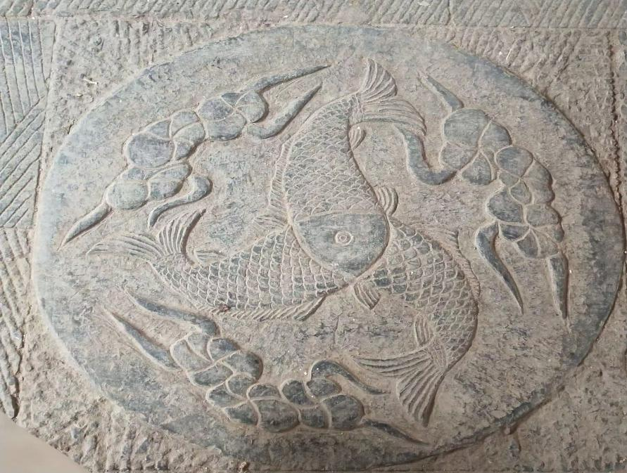 博物馆中,壮锦双狮滚绣与三鱼共首图像交相辉映。图腾作为中华民族文化符号的一种表现形式有其独特的艺术魅力与历史底蕴。壮锦双狮滚绣色彩清新,淡雅而不落俗套,寓意吉祥喜庆。三鱼共首由青石板镌刻而成,寓意团结和谐、生生不息。由此可见,在多民族地区发展过程中,对民族团结、和谐共生的向往与追求与中华文化和伟大民族精神一脉相承。