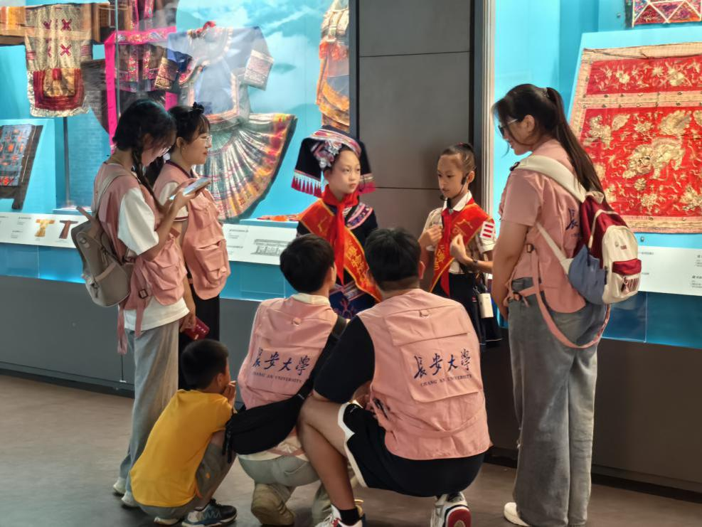 民族服饰是一个民族物质和精神文明的复合体,精巧的手工技艺展现了各民族的勤劳与智慧。队员们走入民族服饰展厅,了解壮、苗、瑶、侗等少数民族的服饰特色,感受其呈现的文化艺术风情与美好故事。随着社会的发展,民族服饰在人们日常生活中正逐渐消失。队员们在交流过程中也意识到保护民族服饰文化的重要性、紧迫性,坚定了保护和传承民族服饰、创新与焕发民族文化的信念。