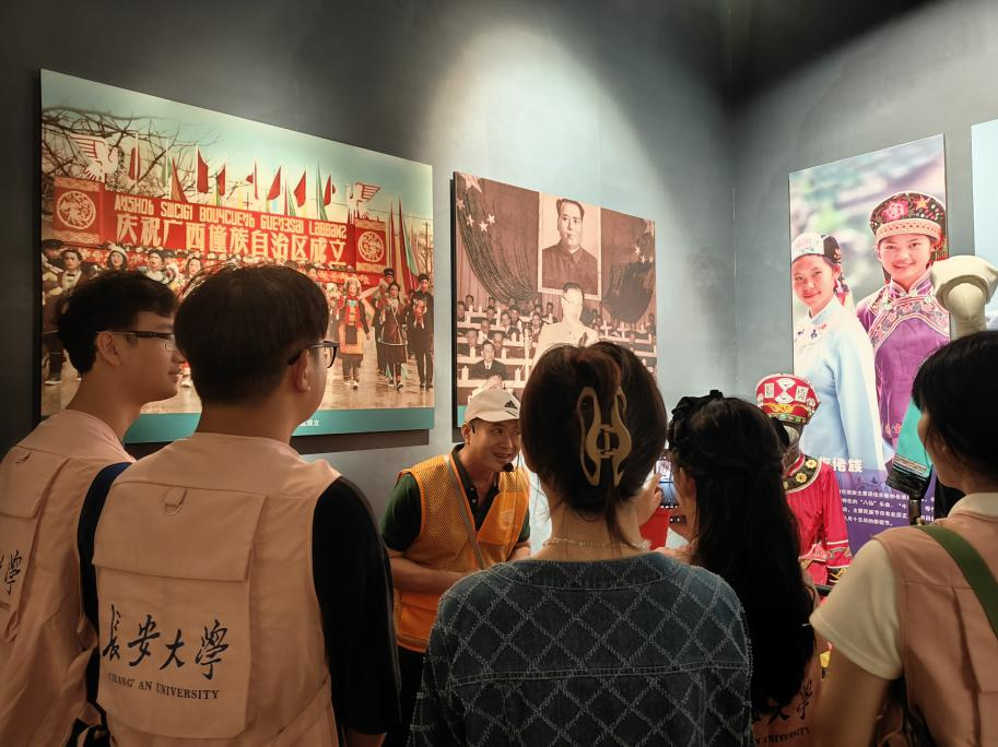 博物馆讲解人员分别从七个单元详细介绍了广西十二个民族的历史、民俗、服饰、建筑等特色。从壮族铜鼓、瑶族刺绣到苗族银饰……每一件展品都闪耀着独特的文化光芒,诉说着不同民族的历史故事。队员们品读铭刻在古代石碑上的历史诗篇,探寻依托在古老图腾中的文化智慧,感受根植于中华民族基因中的团结底蕴。