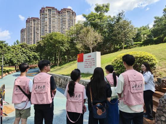 2017年,习近平总书记在南宁考察那考河生态综合整治项目时提到“广西生态优势金不换,要坚持把节约优先、保护优先、自然恢复作为基本方针,把人与自然和谐相处作为基本目标”。实践队跟随习近平总书记的步伐走进那考河湿地公园,在讲解员的介绍中了解那考河从无人问津的“臭水沟”到河畅水清的“湿地园”转变全过程。在生态文明实践培训基地,队员们就习近平总书记的生态治理理论展开学习与讨论,结合目前已了解的生态文明与民族团结示范区情况,认为只有建设良好的生态文明环境,才能为文化传承与发展、民族团结与幸福打下坚实的基础。