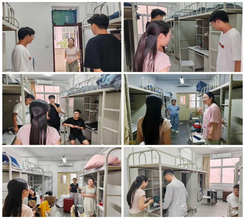 迎新期间,辅导员走访新生宿舍,仔细检查宿舍环境与设施状况,与同学们深入交谈,耐心听取新生反馈的意见和建议,详细了解新生进校后的适应情况,及时答疑解惑,并对同学们表达了关怀与嘱托,做好同学们的生活保障,让同学们都能顺利入住。