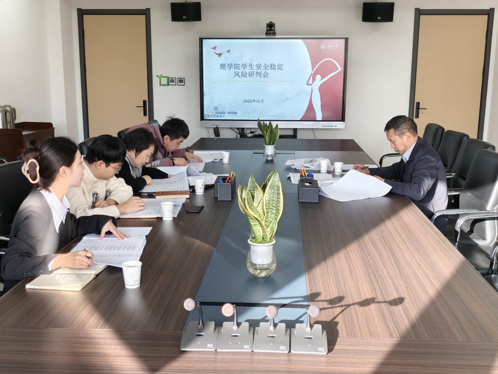刘延海围绕学院学生工作中的学生安全风险和学生稳定风险隐患情况进行了整体汇报,各年级辅导员就本年级学生管理工作和本月具体风险点进行汇报。屈颖围绕近期风险排查、学生就业、校园交通安全等工作的重点难点,综合分析了学院安全稳定工作开展的基本思路、典型案例、目前工作中存在的主要问题和下一阶段学生安全稳定工作的建设目标。