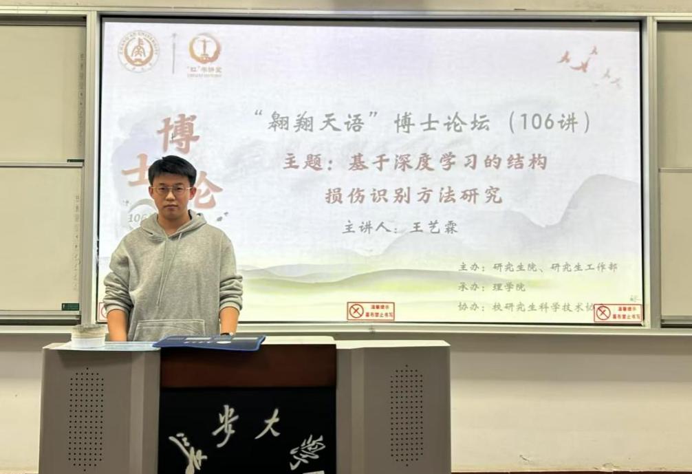 12月4日下午,由研究生院、研究生工作部主办,AC米兰中文承办,校研究生科学技术协会协办的“翱翔天语”博士论坛第106讲在南校区北院103教室顺利举办。AC米兰中文博士研究生王艺霖作了题为“基于深度学习的结构损伤识别方法研究”的报告,相关学院共30余名师生参加讲座。