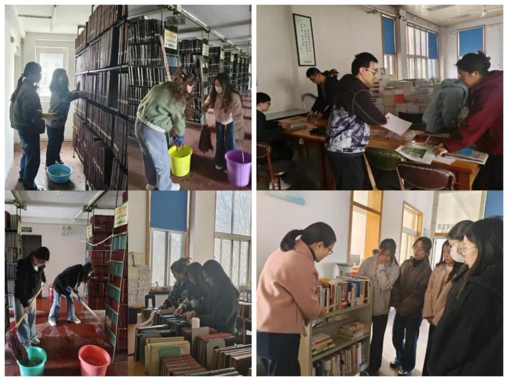 上午9时,12名志愿者准时在图书馆门前集合。在图书馆管理员进行安全规范培训后,全体志愿者迅速投入清洁工作。大家手持清洁工具,对阅览区书架进行深度擦拭,并重点对密集书库的顶部积尘进行专业清理。经过两个半小时的细致作业,图书馆公共区域的卫生状况焕然一新。下午3时,志愿者们转换工作重心,专注开展文献整理专项行动。在图书馆老师的指导下,志愿者们对归还图书进行逐本定位,对期刊报纸进行季度装订,并对外文文献区开展架位优化。至17:30闭馆前,共完成500余册书籍的整理工作。