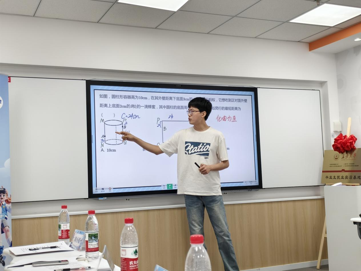 座谈过程中李岳校友分享了自己的成长及工作经历,同时也分享了不断学习、提升自我的经验,鼓励同学们珍惜学习时光,努力提升综合素质和能力。杜绍杰校友为在场的师生们展示了一堂精彩的示范课。讲课过程中,他将复杂的知识讲解得通俗易懂,充分调动了在场人员的学习积极性和主动性,现场气氛热烈融洽。通过这堂示范课,师生们对学而思的教学模式和教学效果有了更直观的了解,也对教育行业的发展有了更深刻的认识。