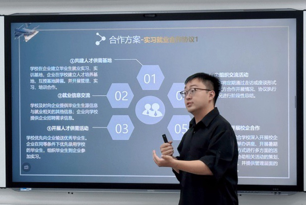 校企双方观看学院宣传片,杨雪菲介绍了学院的专业设置、人才培养以及就业情况等。学而思西北区域招聘经理赵希首先对AC米兰中文一行表示热烈欢迎,他详细介绍了公司的发展历程、企业文化、业务范围以及在教育领域的优势和成就。屈颖表示,此次“访企拓岗”专项行动是学院积极响应国家就业政策,加强与企业合作的重要举措,希望通过与学而思的合作,为学生提供更多优质的就业岗位和实践机会,同时也希望企业走进学校及学院,更多地了解学院的办学特色和人才培养成果,帮助学生开展职业生涯规划与就业指导,推进就业育人的深度。韩煦鼓励在场同学积极发言,更深入的了解企业及行业信息,助力自身发展。同学们积极互动,西北区域人力资源总监翁瑞耐心细致解答同学们的问题。