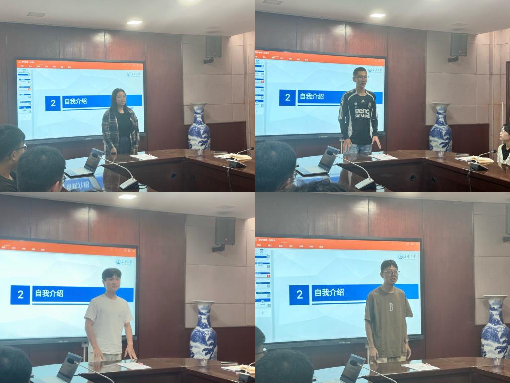 班会第二项为自我介绍环节。同学们来自不同地区、不同院校,拥有多样的学习经历和兴趣爱好。大家依次上台介绍自己,增进了彼此了解,也为今后的学习交流和科研合作奠定了良好基础。