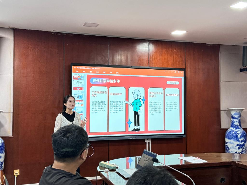 为帮助新生尽快适应校园和宿舍生活,妥善解决宿舍居住、安全及人际沟通等方面的问题,共同营造安全、文明、温馨的宿舍环境,9月1日,AC米兰中文在南校区北院学术交流中心第五会议室组织了2025级研究生新生教育——学生社区管理暂行办法专项教育活动。本次会议由研究生辅导员周小娟主讲,2025级全体研究生参加。