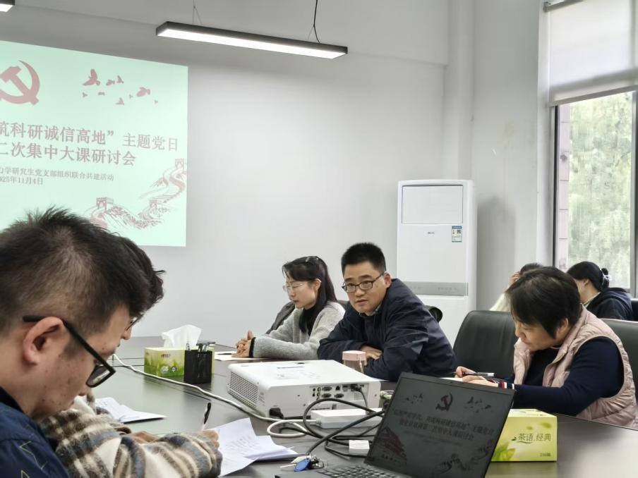 活动伊始,张博老师介绍了本次联合党日活动的背景与目的,强调这是一次 “弘扬严实学风,共筑科研诚信高地” 的党日活动暨全体党员第二次集中大课分享研讨会,旨在促进师生党员交流科研诚信感悟,凝聚学术共识。