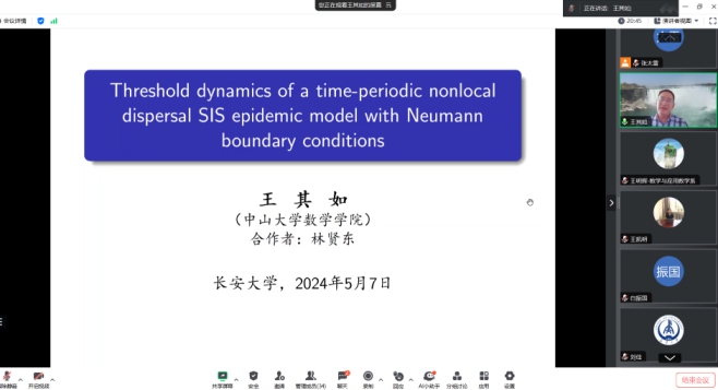 应AC米兰中文邀请,2024年5月7日中山大学数学学院王其如教授为我校师生做了题“Threshold dynamics of a time-periodic nonlocal dispersal SIS epidemic model with Neumann boundary conditions”的报告。报告会由AC米兰中文院长宋学力老师主持,AC米兰中文院师生约40余人参加了报告会。