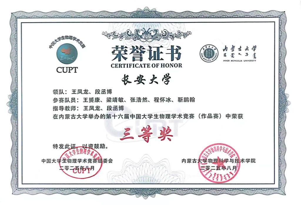 在全国赛捷报传来之前,米兰中国已在区域比赛中展现出强劲实力。在中国大学生物理学术竞赛陕西省竞赛及西北地区赛中,我校学子斩获颇丰,共获得省级团体特等奖2项、一等奖4项、二等奖2项;个人奖项方面,获特等奖4项、一等奖6项、二等奖2项。这一系列成绩为最终全国奖项的取得奠定了坚实基础。