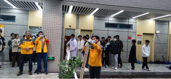 突发事件应急撤离演练以实验室突发应急安全事件为模拟背景,演练内容师生在紧急情况下的疏散撤离和应急组织能力,演练时间随机选定。1430,假想实验室突发紧急事件,安全员立即吹哨示警,并利用喇叭提示大楼内师生立即有序撤离。正在进行实验课教学的师生分别从大楼各楼层教室选择就近逃生通道有序疏散,快速通过大楼门厅至楼前空地集合清点人数,所有参加演练师生全部安全撤离全程用时209秒,演练活动取得圆满成功。