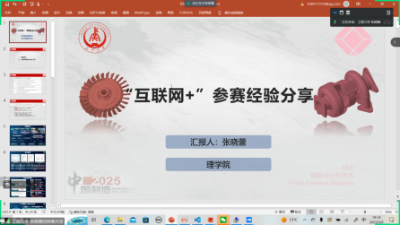 接下来,张晓蕾同学分享了他们团队在高教主赛道的参赛经验,讲解了大赛的具体规则和准备流程;胡冰冰同学介绍了他们团队在青年红色筑梦之旅赛道的项目内容,并分享了准备过程的具体步骤。随后,学生问题解答环节开始,王成对同学们提出的问题进行了详细解读和剖析,并肯定了同学们的热情和参与。