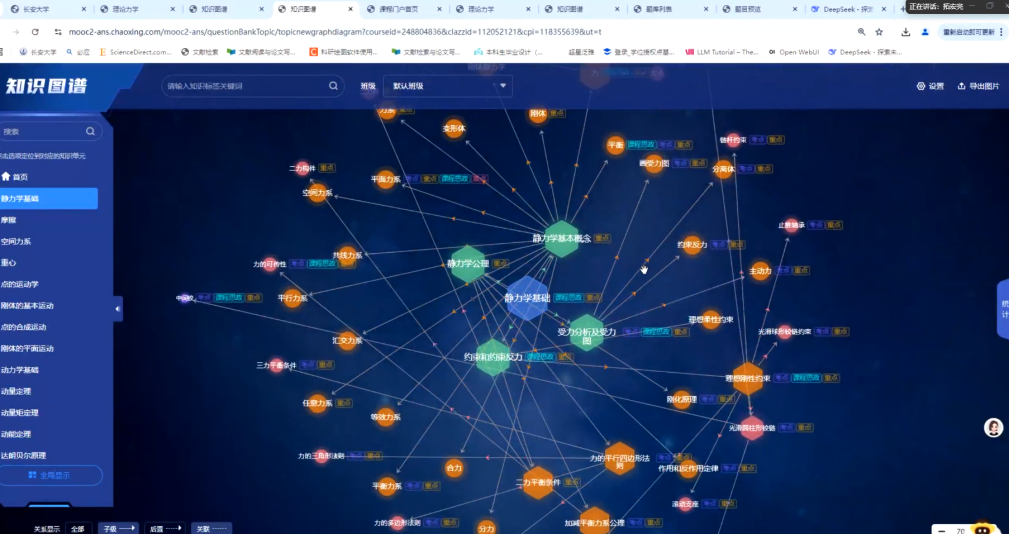 理论力学课程组首先详细汇报了理论力学智慧课程建设的进展情况。课程组通过对理论力学知识点的精细梳理和思政元素的深度挖掘,成功构建了一套“知识图谱+问题图谱+目标图谱+思政图谱+AI辅助”的智慧课程教学体系,并基于AI大模型开发了理论力学辅助教学的系列动画,开发了助学助教的智能体,初步形成了“基础扎实、思政融通、智能辅助、工程导向”的智慧课程。
