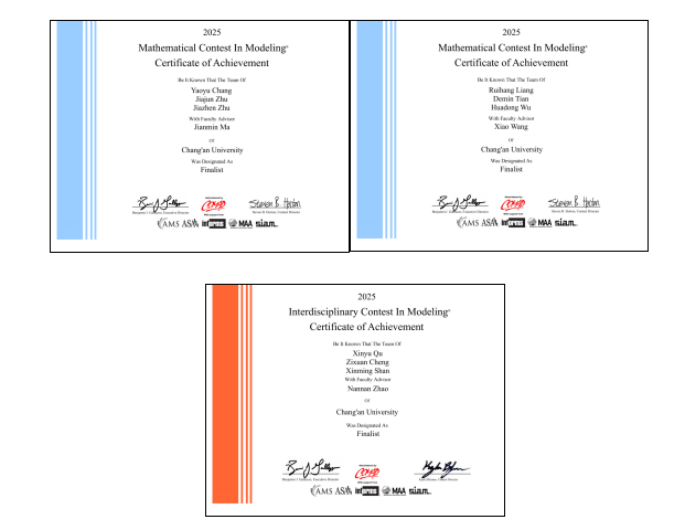 近日,2025年美国大学生数学建模竞赛(MCM/ICM)成绩正式揭晓,我校在本次竞赛中再创佳绩,共获得特等提名奖(Finalist)3项、国际一等奖(Meritorious Winners)7项、国际二等奖(Honorable Mention)42项,获奖数量继续稳步提升。