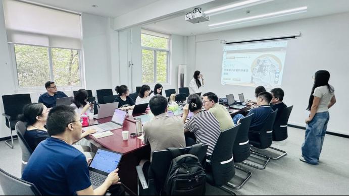 工作坊实操培训分三个阶段进行。首先,平台工程师带领老师们使用相关课程共享资源包快速建课,对AI辅助教学资源建设进行了逐一演示和现场操作指导。然后,围绕不同课程特点,工程师带领老师们就课程章节内容、知识图谱、能力图谱、问题图谱、思政图谱、AI助教等方面进行建课指导,帮助老师们掌握智慧课程的具体建课内容。最后,工程师围绕智慧课程运行中的学生学习路径、学习画像、辅助辅导、作业生成与智慧批阅等方面的功能带领老师进一步熟悉应用方法。