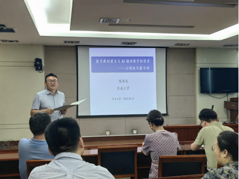 为深化教育教学数字化改革,推动数字教材与人工智能辅助教学及智慧课程建设,AC米兰中文于2025年6月15日下午在南校区学术交流中心第一会议室举办2025年“双万计划”系列讲座,特邀东南大学陈建龙教授作主题为“数字教材建设与AI辅助教学的探索——以线性代数为例”的报告。院长宋学力教授主持会议,学院20余名教师参加培训。