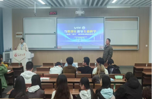 师瑞以“当数理化遇见生命科学:一场由‘设计’思维驱动的市场变革”为主题阐述了生命科学从传统经验探索向现代“理性设计”的范式转移路径,结合DNA纳米技术、生物合成等前沿案例,展示了如何运用数理模型、力学原理与化学工具破解药物靶向递送、绿色生物制造等产业难题。他又以“市场变革”与“创新创业”核心,介绍了相关领域的就业前景,分析了企业所需复合型人才的特质,为学生规划职业生涯提供了清晰指引。