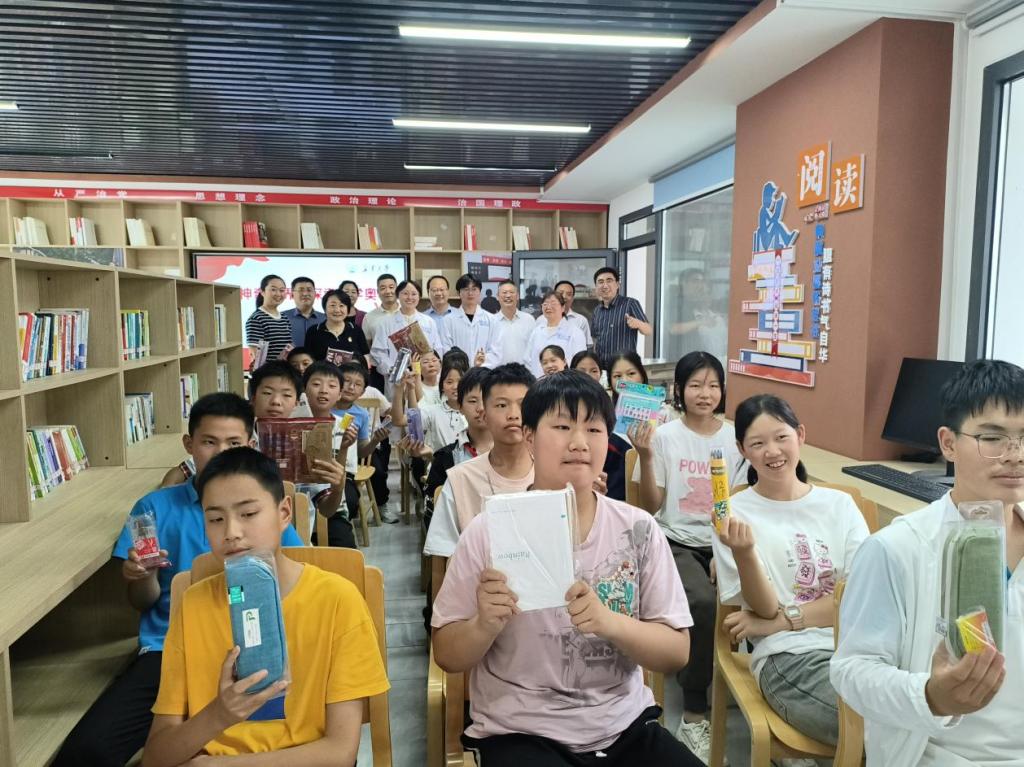 与学校师生座谈并向家庭困难学生捐赠学习用品